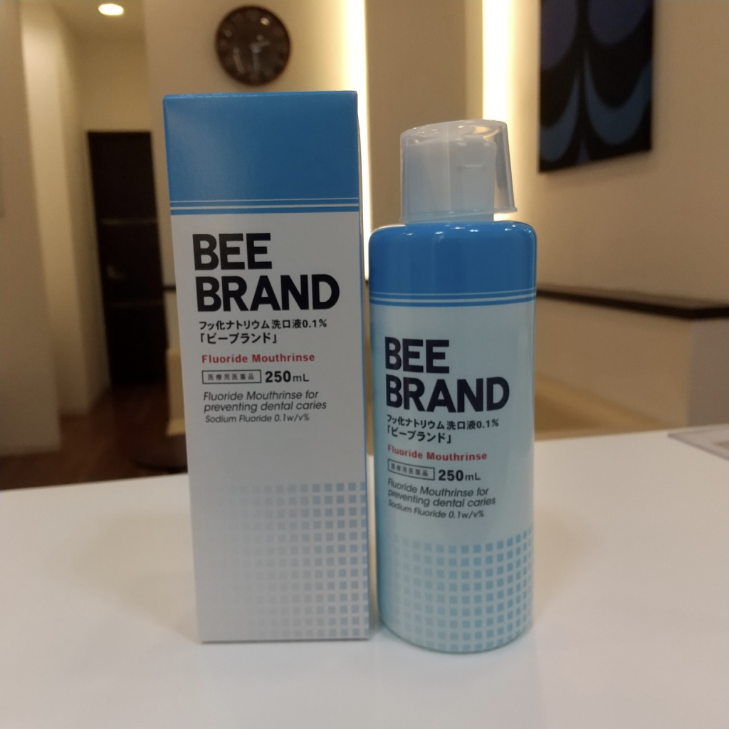 フッ化ナトリウム洗口液0.1%「ビーブランド」は液体なのでお口の中全体にフッ素が拡がりやすく、さわやかなリンゴ味でお子様でも抵抗なくご使用いただけると思います。