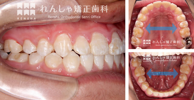 歯並びが悪くなったのは、歯列が狭いことが原因。診察してみると、上下ともに歯の並びがかなり狭くなっていました。