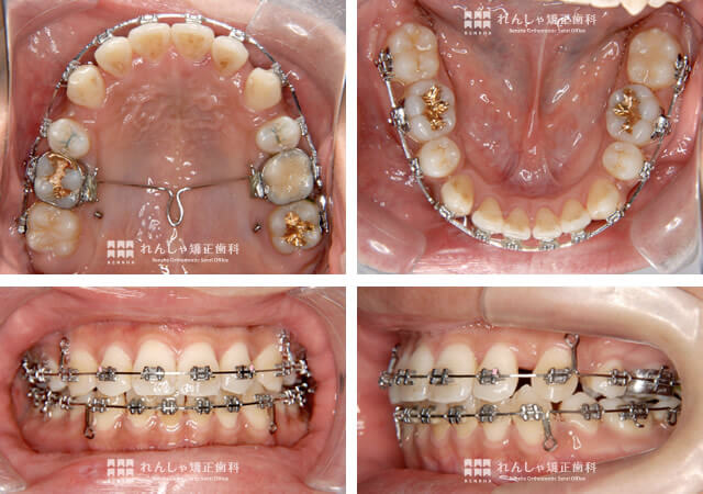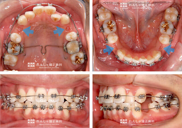 歯のがたつきが改善したので今後は上下前歯を後方へ牽引する