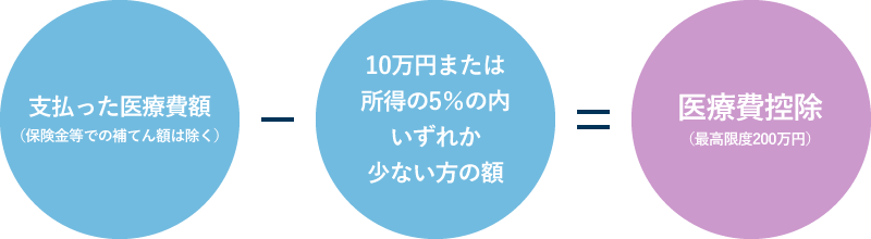 (未払いの医療費は控除対象になりません。但し、その年の所得合計が200万円以下の方は10万円以下でもその対象となる場合があります。)